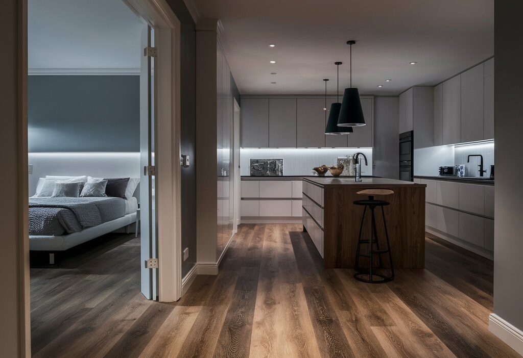 - Văn phòng: Sàn tông trung tính tạo môi trường làm việc chuyên nghiệp nhưng vẫn thân thiện.